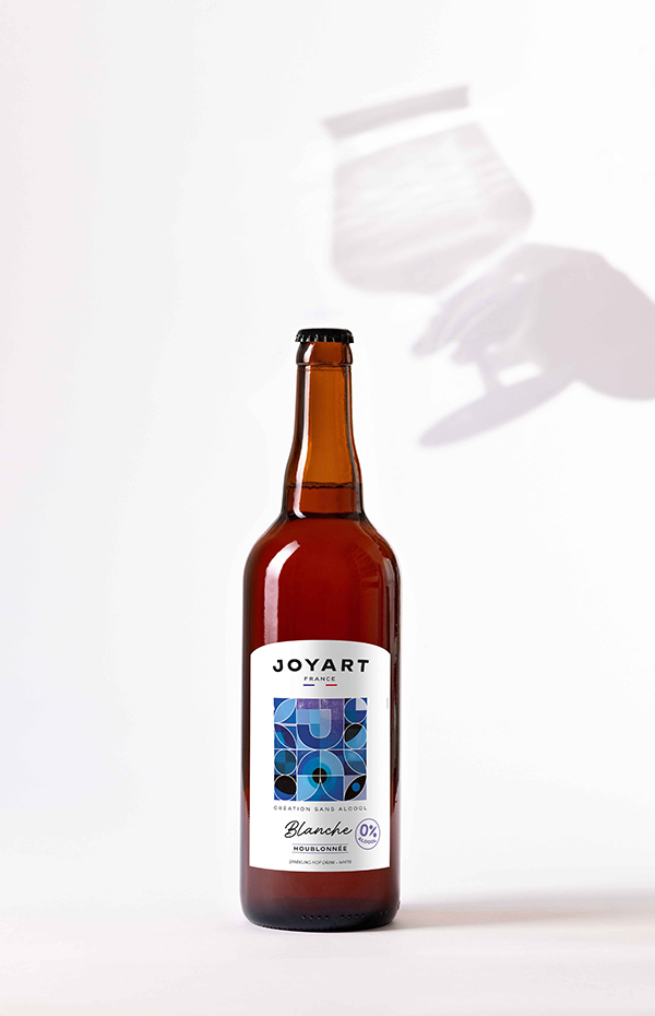 La Blanche 0% JOYART reinvents the French 'Art de Vivre' with a refreshing, vibrant, and delicately hoppy creation. Crafted without alcoholic fermentation and produced from an infusion of French hops, this beverage reveals an elegant aromatic profile, highlighted by citrus notes and a refined freshness.