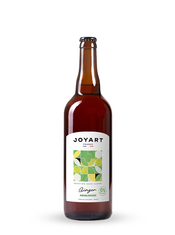 Audacieuse et éclatante, la Ginger 0% JOYART associe la vivacité du gingembre à la fraîcheur aromatique des houblons français. Sans fermentation alcoolique, cette création révèle un caractère vibrant, énergique, relevé par une note épicée parfaitement maîtrisée.